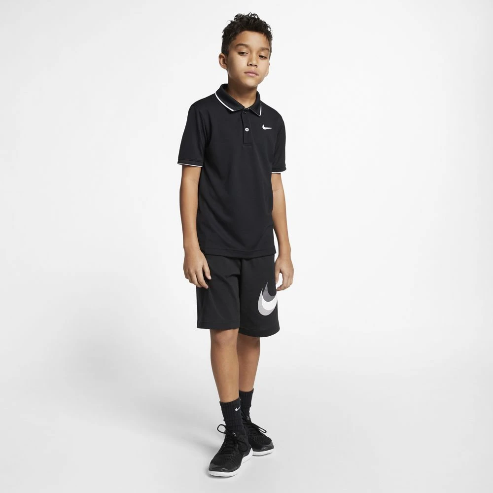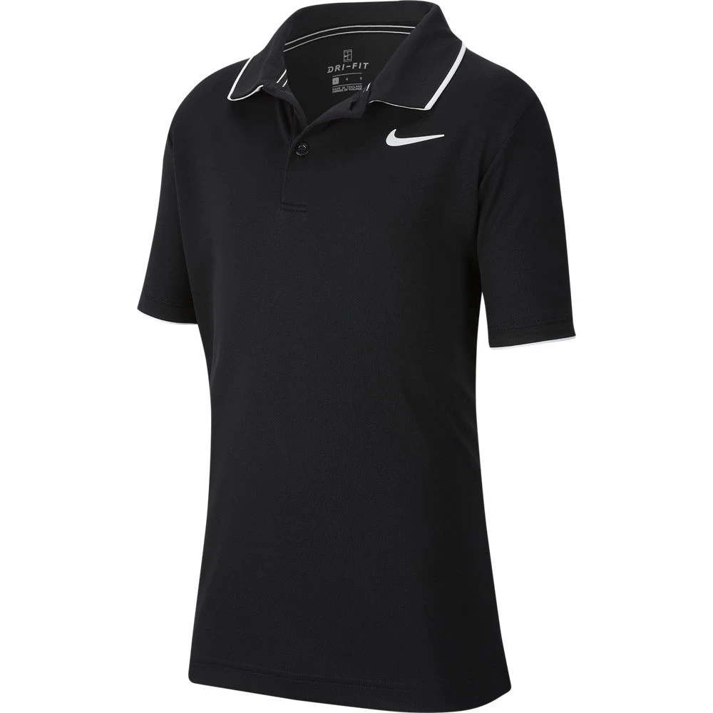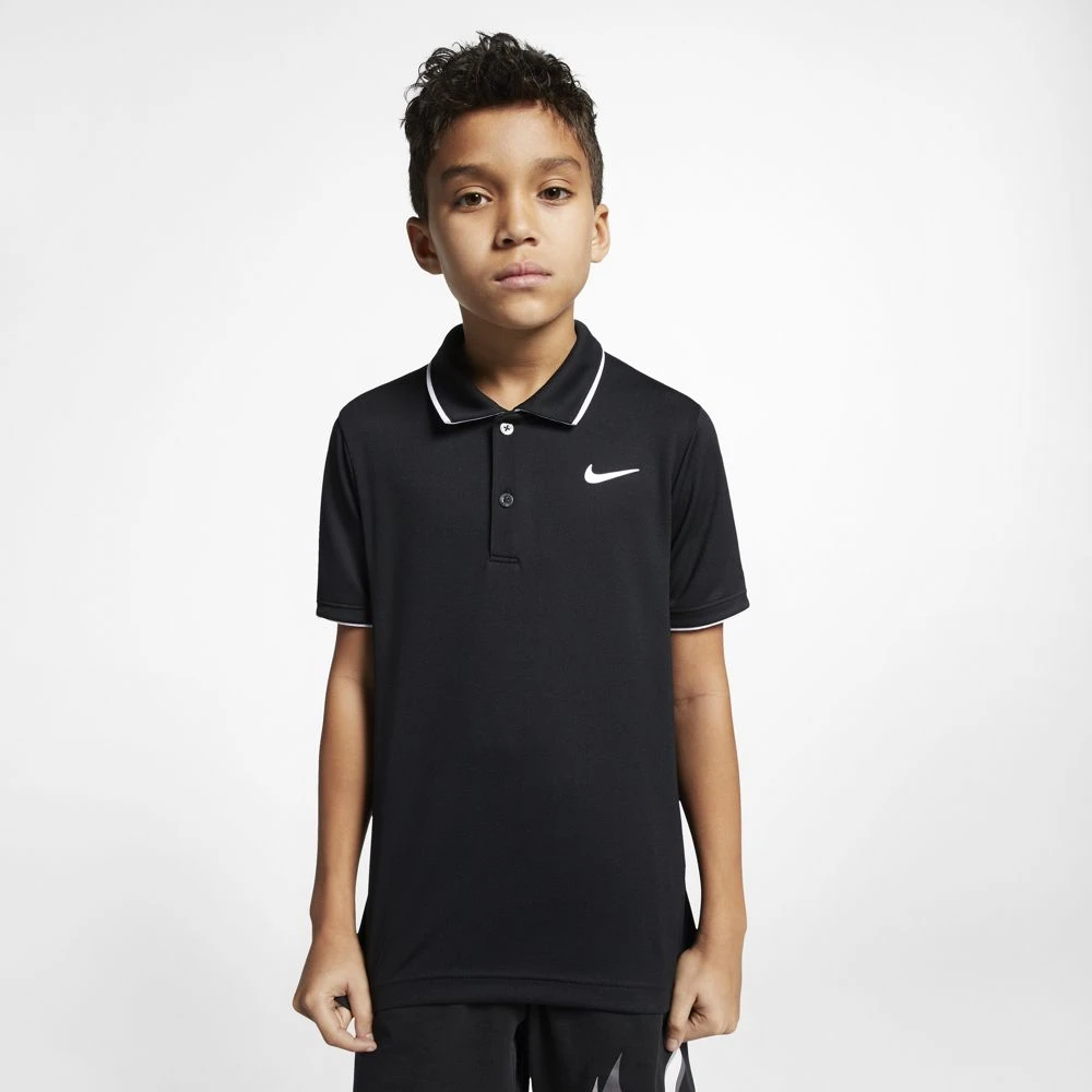 The NikeCourt Boy’s Dri-FIT Polo is a competitive junior’s go-to choice for on and off-court style. This polo has a classic look with a two button placket and black sleeve cuffs for a subtle accent.