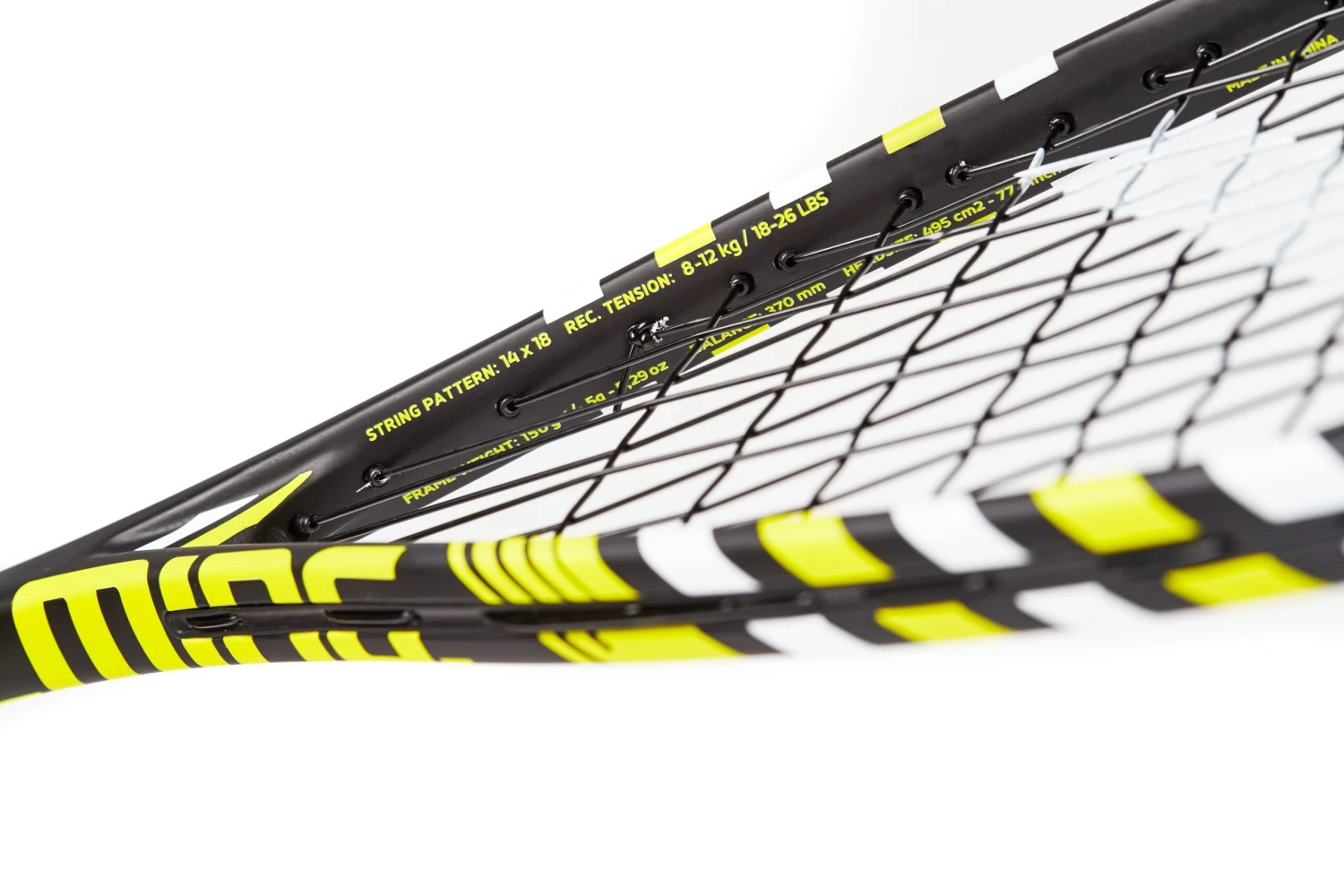 The Salming Aero Forza is strengthened by a powerful carbon composition that adds power to the frame. The tear drop head shape is complimented by a 14×18 string pattern that’s tightened in the sweet spot for extra control and touch when dropping from the back corners.