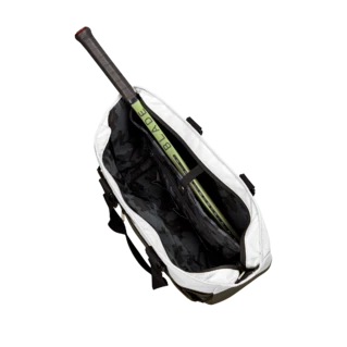 Defined by premium quality, clean design, and ultimate appeal, Wilson’s women’s bag line has no shortage of useful features. This tote sports a primary padded compartment that carries up to 2 rackets or a laptop, two elastic side pockets perfect for water bottles or tennis ball cans, and a removable zippered shoe bag to help keep the bag clean. Other highlights include an exterior zippered, fleece-lined pocket for valuables and a sleek silver logo plaque as a nice finishing touch.