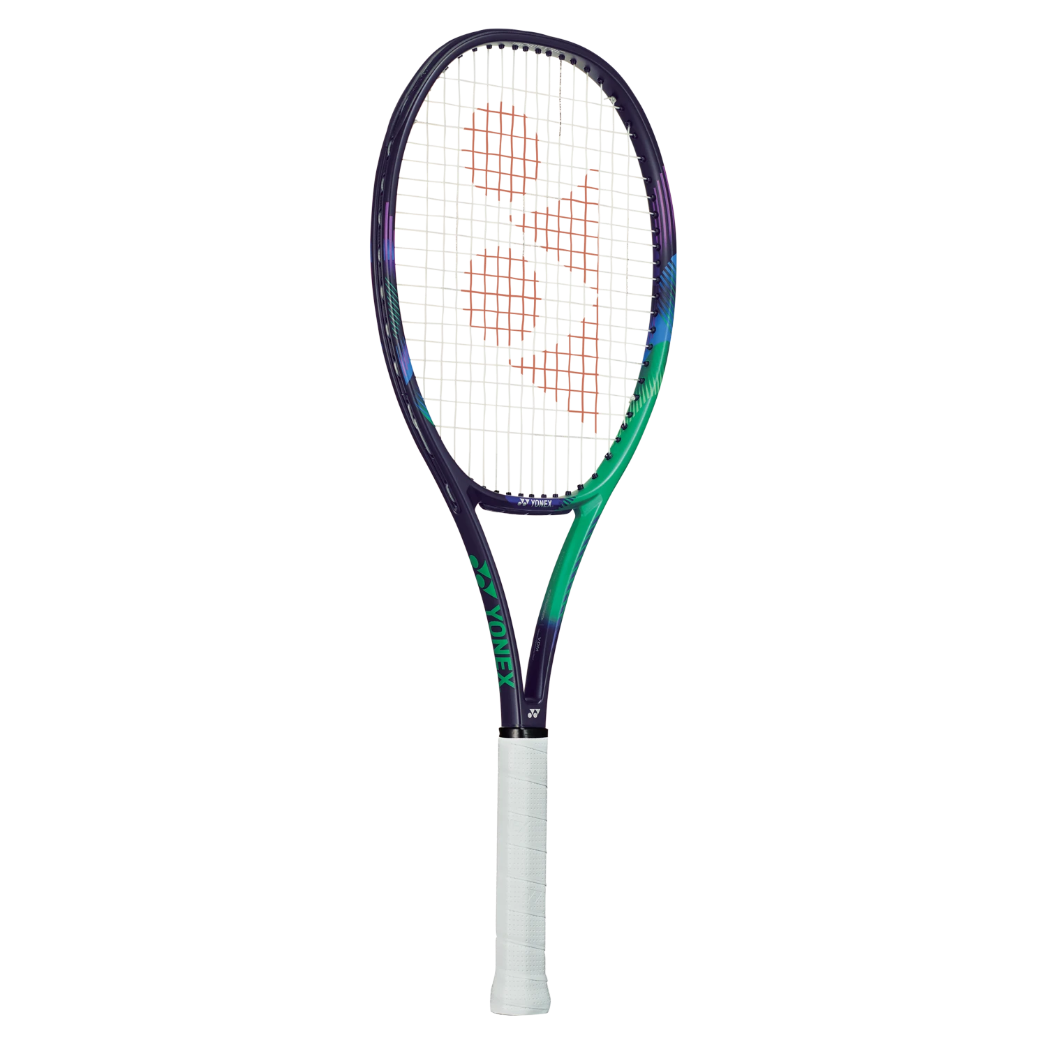 Light, dialed-in and loaded with flex and feel, the Yonex VCORE Pro 97L (290g) is a great update for players that want extra maneuverability or a platform frame to customize head to grip. The Yonex VCORE Pro 97L (290g) features a sharp green and purple cosmetic and new technology that has increased its feel and flex to be more responsive through contact. In the frame layup, Yonex introduces its FlexCon System, a tapered box-frame design and long shaft to provide more flex. FlexCon combines Flex Force Graphite for flex and snapback with Flex Fuse Graphite for flex and a softer feel. The higher racquet flex creates longer ball contact and more feedback to give you better trajectory and placement control. Yonex’s signature Isometric technology continues to give the VCORE Pro a much larger sweet spot you can feel for racquets with a 97 square inch head size. Lock Booster Grommets add power to the Yonex VCORE Pro 97 (290g). This grommet rib structure elongates the strings for a larger sweet spot and reduced energy loss. An extremely maneuverable racquet that plays with a lot of speed from the baseline and at net, the Yonex VCORE Pro 97 (290g) is a perfect choice for players that want for more flex, feel and control in their game.